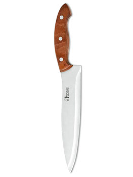 Изготовлен из высококачественной нержавеющей стали со специальным антибактериальным покрытием лезвия. Специальное нестираемое антибактериальное покрытие препятствует контакту продукта и стали, значительно увеличивает гигиенические свойства ножа. Эргономичная рукоятка выполнена из высококачественного дерева. Рукоятка не скользит в руках и делает резку удобной и безопасной.