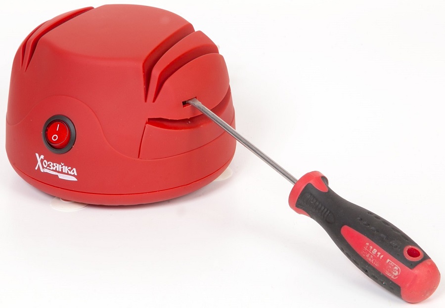 Хозяйка 40М точит не только ножи, но и ножницы и отвертки. Для этого на корпусе предусмотрены специальные слоты. Втягивающийся шнур питания обеспечивает большую компактность и удобство хранения и транспортировки.