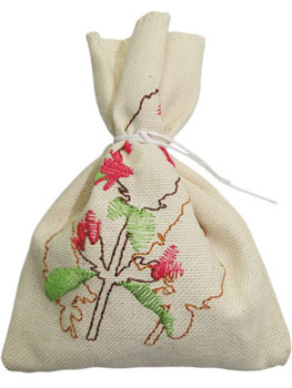 Льняной мешочек с чабрецом предназначен для запаривания в бане или ванной. Душистый травяной сбор упакован в специальный мешочек с вышивкой. После использования аксессуар можно высушить и повесить в доме или бане на удачу.