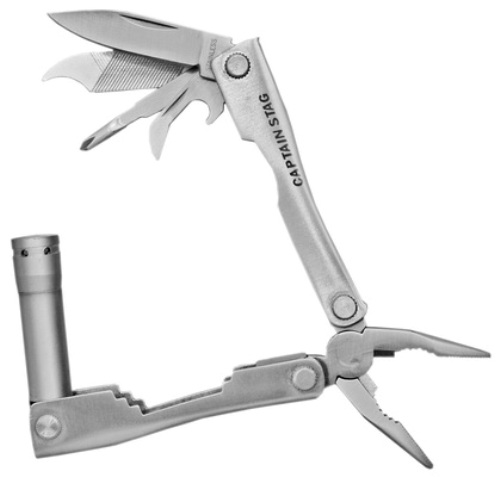 Многофункциональный нож CAPTAIN STAG M-5627 изготовлен из прочной нержавеющей стали и имеет целый комплекс необходимых инструментов, при помощи которых вы сможете всегда устранить небольшую поломку в дороге. Такой нож пригодится не только в дороге, но и на отдыхе - открыть бутылочку газировки, например.