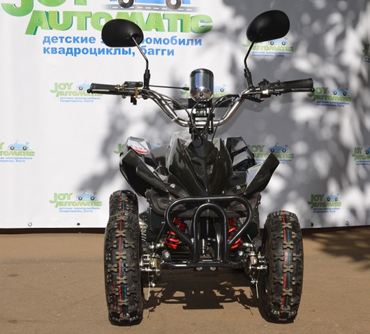 Бензиновый квадроцикл для детей и подростков Joy Automatic LMATV-049М – это полноценное транспортное средство с цепным приводом и дисковыми тормозами, которое способно развивать скорость до 40 км/ч за счет двухтактного бензинового двигателя объемом 49 см³. Модель оснащена пультом дистанционного управления, полноценным спидометром и настоящими зеркалами заднего вида.