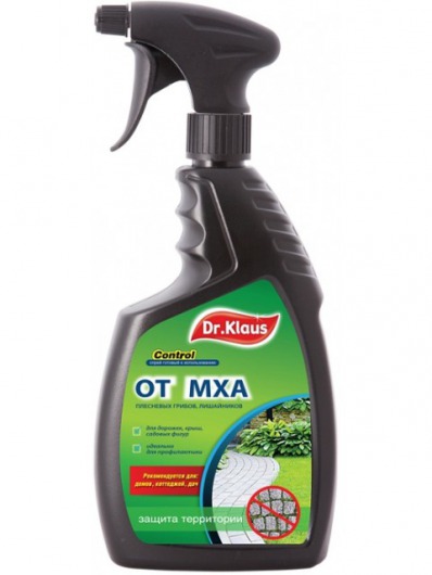 Спрей Dr.Klaus предназначен для уничтожения и профилактики появления мха, плесени, лишайников и водорослей вне помещений на любых поверхностях: дерево, бетон, асфальт, плитка, сайдинг, гипс, кровельные материалы, стекло, керамика, пластмасса, металл, природный камень. С помощью этого фунгицидного средства вы легко избавитесь от мха и плесени на памятниках, на крышах и фасадах домов, на тротуарной плитке и т.д.