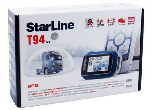 Автосигнализация StarLine Т94 T2.0, являющаяся телематическим охранным комплексом, используется для защиты грузовых и других транспортных средств, напряжение бортовой сети которых составляет 24 Вольта. Охранная система автомобильной сигнализации оборудована диалоговым несканируемым кодом управления и интегрированным интеллектуальным автозапуском. В сигнализацию встроен 128-полосный помехозащищённый приёмопередатчик, обеспечивающий стабильную бесперебойную работу  при воздействии городских радиопомех. Благодаря диалоговому коду управления обеспечивается надёжная защита от электронного взлома.