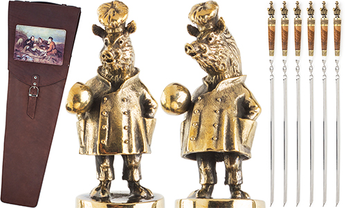 Набор из шести эксклюзивных шампуров "Кабан" станет достойным подарком тому, кто любит и умеет готовить шашлык. Ведь это не стандартные шампуры, а полноценные авторские изделия ручной работы.