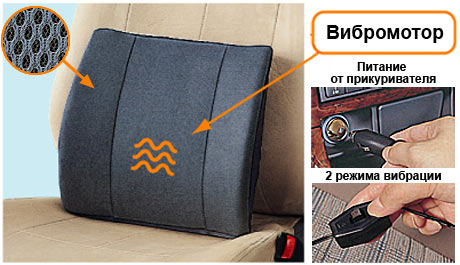 Вибромассажная подушка методично и эффективно массирует область поясницы, повышая тонус и активизируя жизненную энергию