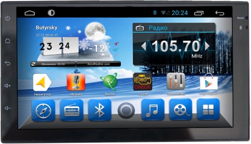 Штатное головное мультимедийное устройство позволяет прослушивать аудиофайлы различных форматов, просматривать видео (в том числе в HD-формате) и фотографии как с внутренней памяти устройства (8 Гб), так и с внешних носителей и SD карт памяти. Вы также можете слушать аналоговое или интернет-радио или смотреть видео онлайн. Или подключить цифровой ТВ-тюнер, чтобы смотреть цифровые каналы прямо на экране устройства. А еще у вас есть возможность подключить DVD-привод и смотреть фильмы и управлять DVD-меню прямо с сенсорного экрана магнитолы.