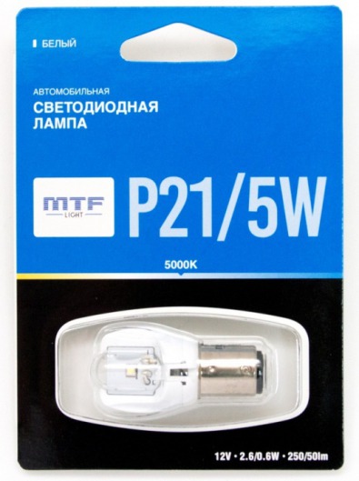 Вопросы и отзывы про Светодиодная лампа MTF Light P21/5W 2.6/0.6W двухконтактная (белый свет)