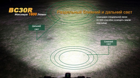 Чтобы велосипедисту было проще ориентироваться на дороге или лесной тропинке в темное время суток, луч света велофары фокусируется сразу в двух точках, равномерно освещая как ближнее пространство перед колесами велосипеда, так и территорию на 155 м вдаль. При этом, боковая засветка также довольно широкая. Помимо особой системы фокусировки, в данной модели велофары также реализован механизм преломления верхней части луча света под таким углом, чтобы он не попадал в глаза встречных участников движения.