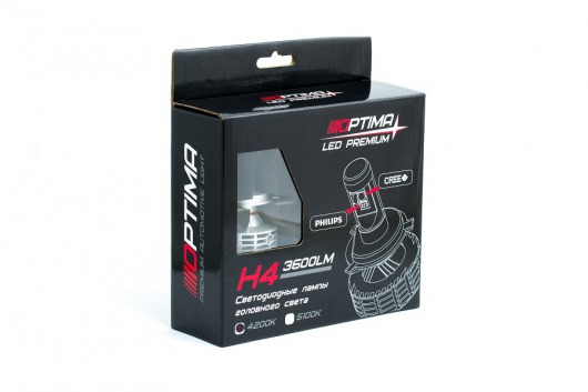 Светодиодные лампы Optima Premium H4 Cree 12-24V 5100K – это лампы в головной свет с увеличенной светоотдачей. Такие показатели достигаются благодаря использованию современных технологий CREE. Лампы Optima работают намного эффективнее, характеризуются более мощным световым потоком.