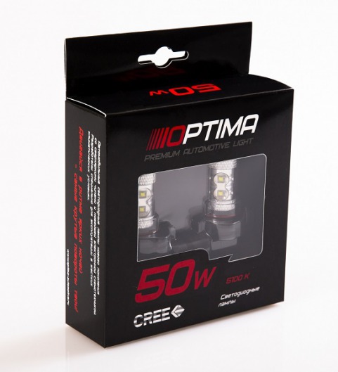 Светодиодные лампы Optima Premium HB4 (9006) Cree 50W 12-24V 5100K – это лампы с увеличенной светоотдачей. Такие показатели достигаются благодаря использованию современных технологий CREE. Лампы Optima работают эффективнее, характеризуются более мощным световым потоком.