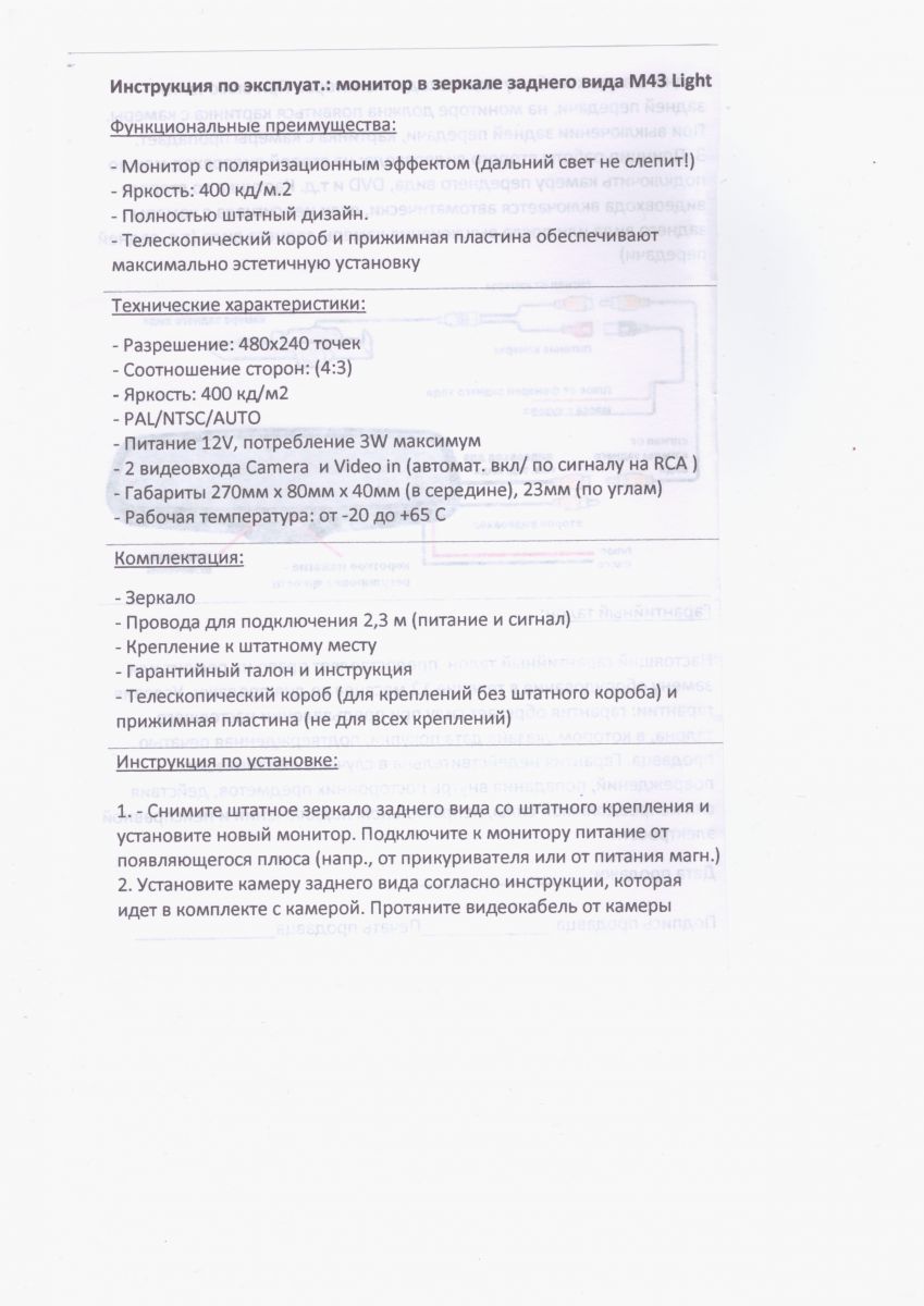 Вопросы и отзывы про Зеркало с монитором 4,3" Redpower M43 Light с креплением №1