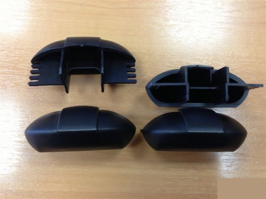 Комплект торцевых заглушек для аэродинамических багажных поперечин Mont Blanc. Длина 70 мм, высота 27 мм. Профиль симметричный.