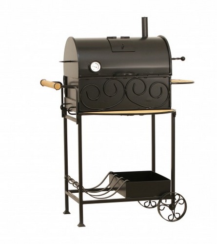 Угольно-древесное барбекю – отличное решение для любителей отдыха на природе. Эту модель вы можете использовать не только для приготовления барбекю, но и как мангал или коптильню. Для того, чтобы вы могли наблюдать за приготвлением, у конструкции есть специальный лючок. А для регулирования температуры на крышке и на дне есть вентиляционные отверстия.