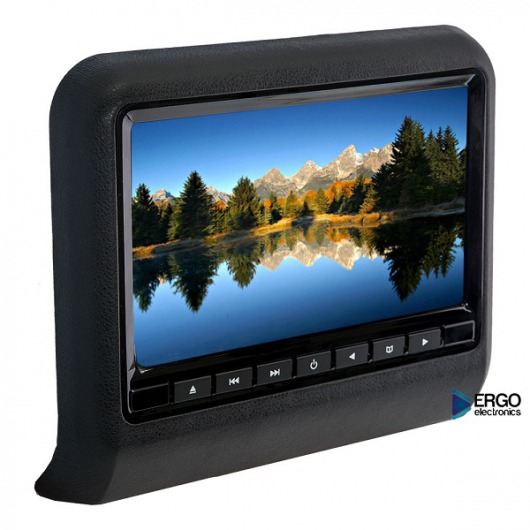 Навесной монитор на подголовник ERGO ER9L с покрытием из высококачественной искусственной кожи оборудован встроенным DVD-проигрывателем c вертикальной загрузкой диска, а также разъёмами USB, SD и HDMI.