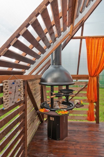 Так же в качестве дополнительного аксессуара гриль может быть оснащен всепогодным чехлом и дополнительными трубами, с проходным элементом через крышу.