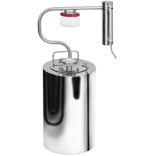 В комплектацию входит: перегонный куб, змеевик-холодильник, барашки 6 штук, силиконовая прокладка, переходные трубки, книжка с рецептами, презентабельная упаковочная коробка, технический паспорт, гарантийный талон, биметаллический термометр, сухопарник - банка из стекла, крышка на сухопарник.