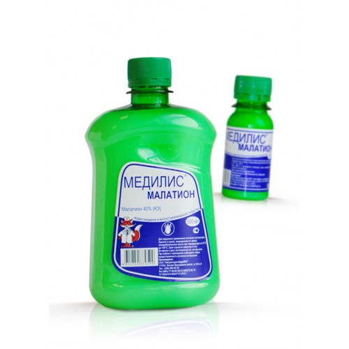 Медилис-МАЛАТИОН 50 мл – педикулицидный и инсектоакарицидный препарат, выпускающийся в виде концентрата. Эмульсия похожа на белую жидкость, в составе которой содержится 40% карбафоса.
