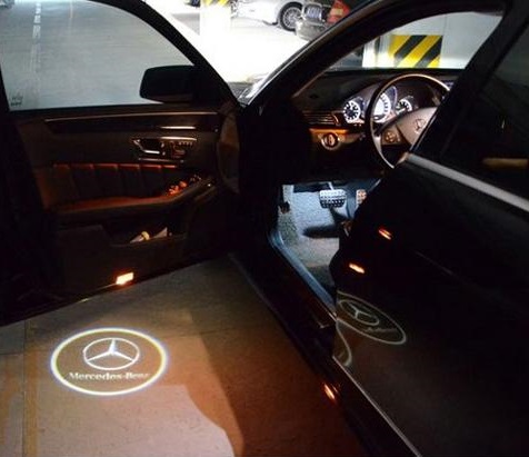 Подсветка с логотипом Mercedes - новый нестандартный вариант тюнинга! В плафон подсветки двери устанавливается миниатюрный проектор, который выводит на асфальт четкое цветное изображение логотипа Mercedes. Картинка появляется, когда вы открываете дверь, и исчезает, когда дверь закрывается. Выглядит это очень стильно и необычно.