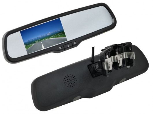 Салонное зеркало с монитором устанавливается вместо штатного зеркала заднего вида. Поэтому в выключенном состоянии прибор абсолютно не привлекает внимания воров и мошенников. Его установка займет всего несколько минут. В комплекте имеется специальный держатель, это крепление предназначено для установки на штатную площадку на лобовое стекло. Имеются все нужные провода для подключения к питанию.
