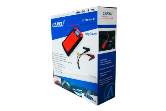 Пуско-зарядное устройство CARKU E-Power-43 – компактный гаджет, который поможет вам запустить двигатель автомобиля или мотоцикла, а также обеспечит зарядку портативным устройствам вроде телефона или планшета. В случае необходимости само ПЗУ можно зарядить от прикуривателя прямо в автомобиле.