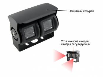 Цветная двойная камера для грузового транспорта PLV-CAM-TR02 выполнена в надежном и прочном корпусе из метала со вклеенным стеклом. В корпусе размещаются 2 камеры. Угол наклона каждой можно отрегулировать на свое усмотрение. Благодаря самой современной матрице камеры и наличию ИК подсветки картинка будет очень четкой даже в условиях полной темноты. У корпуса камеры имеется козырек, который защищает сенсор камеры от прямых солнечных лучей. Для подключения необходим монитор с двумя видео входами.