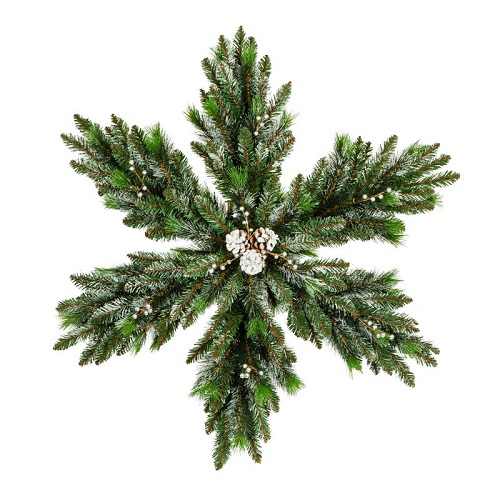 Материал, из которого сделана новогодняя снежинка, не горит. Поэтому в новогоднюю ночь вы смело можете жечь рядом с ней бенгальские огни или свечи. Кроме того, материал долговечен, не осыпается и не выцветает: такая искусственная сосновая гирлянда будет радовать вас не один год.