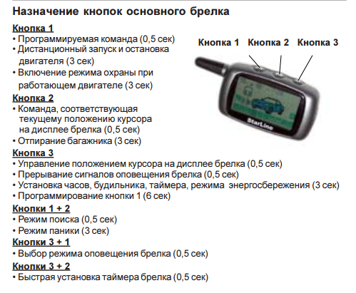 Всего в память сигнализации можно записать 4 брелка. Запись кодов брелков производится при выключенном режиме охраны в следующем порядке: