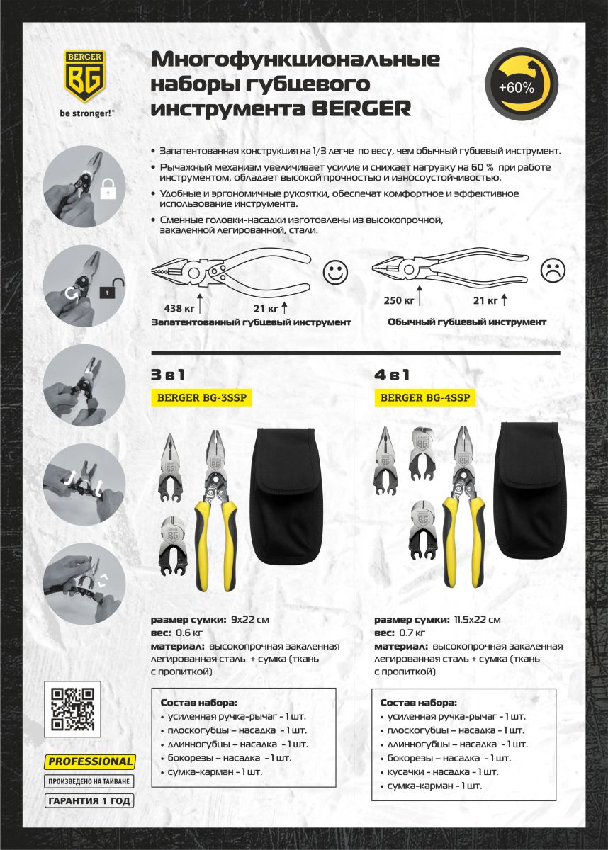 Вопросы и отзывы про Набор губцевого инструмента BERGER BG-3SSP (3 предмета)