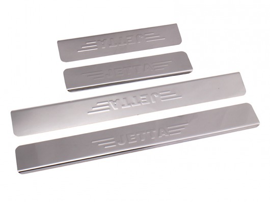 Внутренняя накладка на порог Volkswagen Jetta — это аксессуар автомобильного тюнинга, который защищает внутренний порог от механических повреждений при посадке и высадке из машины. Декоративные накладки с логотипом на внутренние пороги предназначены для автомобилей Фольксваген Джетта.