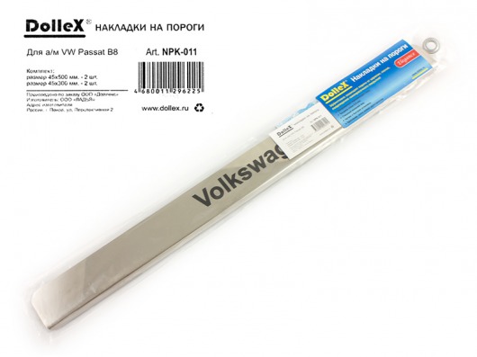 Внутренняя накладка на порог Volkswagen Passat B8 — это аксессуар автомобильного тюнинга, который защищает внутренний порог от механических повреждений при посадке и высадке из машины. Декоративные накладки с логотипом на внутренние пороги предназначены для автомобилей Фольксваген Пассат Б8.