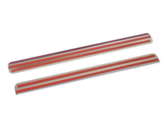 Накладки на металлические пороги дверей Mercedes Vito с логотипом авто не только обеспечивают защиту верхней и боковой поверхности внутреннего порога, но и отлично вписываются в интерьер автомобиля, подчеркивая его стиль и индивидуальность. C монтажом проблем не возникнет: установка накладок на внутренний порог для Мерседес Вито производится на штатные места с помощью скотча 3M.
