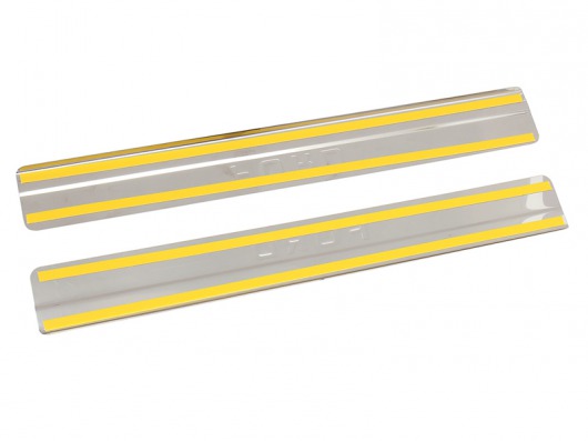 Накладки на металлические пороги дверей Форд Фиеста с логотипом авто не только обеспечивают защиту верхней и боковой поверхности внутреннего порога, но и отлично вписываются в интерьер автомобиля, подчеркивая его стиль и индивидуальность. C монтажом проблем не возникнет: установка накладок на внутренний порог для Ford Fiesta производится на штатные места с помощью скотча 3M.