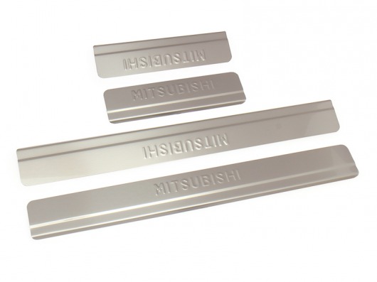 Накладки на металлические пороги дверей Митсубиси Аутлендер с логотипом авто не только обеспечивают защиту верхней и боковой поверхности внутреннего порога, но и отлично вписываются в интерьер автомобиля, подчеркивая его стиль и индивидуальность. C монтажом проблем не возникнет: установка накладок на внутренний порог для Mitsubishi Outlander производится на штатные места с помощью скотча 3M.
