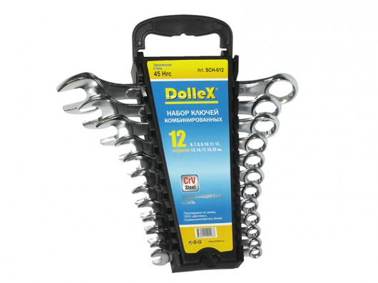 Dollex SCH-012 — это набор комбинированных гаечных ключей, состоящий из 12 инструментов  – от 6 до 22 мм. Комбинированные ключи Dollex SCH-012 хранятся в удобном пластиковом держателе, в котором все ключи расположены строго по размеру.