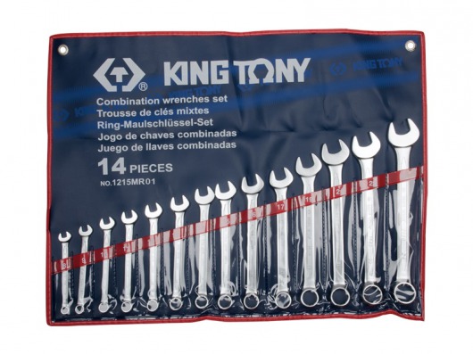KING TONY 1215MR01 — это набор комбинированных гаечных ключей, состоящий из 14 инструментов  – от 8 до 24 мм. Комбинированные ключи KING TONY 1215MR01 хранятся в удобном чехле, в котором все ключи расположены строго по размеру.