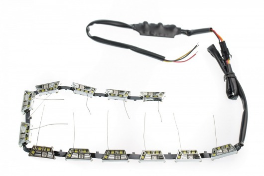 Гибкие дневные ходовые огни (DRL) Optima предназначена для установки в фары автомобиля. Может работать в 2-х режимах: для подсветки и индикации поворота, а также в режиме дневных ходовых огней (DRL).  При повороте лента светит желтым светом, при движении прямо — белым. Диодная лента имеет гибкий корпус, поэтому может быть согнута в любом направлении.