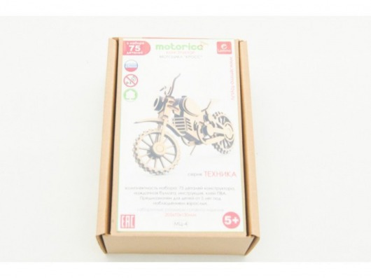 Деревянная игрушка Lemmo Мотоцикл Кросс – это набор конструктора средней сложности (75 деталей), поэтому рекомендован для детей от пяти лет. Его не только очень интересно и увлекательно собирать, но и в итоге вы получаете настоящую игрушку-мотоцикл, которая отлично ездит по любой поверхности (вращаются колеса) и управляется (крутится руль). Это просто отличный подарок для мальчиков и девочек, которые любят поиграть с машинками.