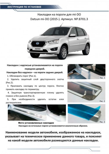 Вопросы и отзывы про Накладки на пороги для Datsun mi-DO от 15 г.в. (Rival)