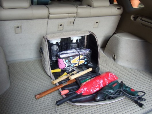 Этот автомобильный органайзер небольших размеров — 46 х 30 х 31 см, но Вы можете хранить в нем немало нужных вежей. Вы можете положить туда и набор автохимии, и буксировочный тросс, и щетку-сметку для снега со скребком и много других полезных предметов.
