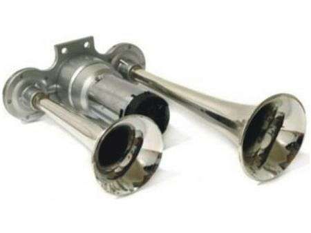 Звуковой сигнал пневматический со встроенным компрессором совместим с автомобилями у которых напряжение бортовой сети составляет 12 Вольт. Корпус клаксона выполнен в цвете хром, устройство имеет достаточную мощность сигнала и надежность. Для установки звукового сигнала не обязательно обладать специальными знаниями и умениями в этой области. Все используемые крепления универсальны и подойдут для установки на любой автомобиль.