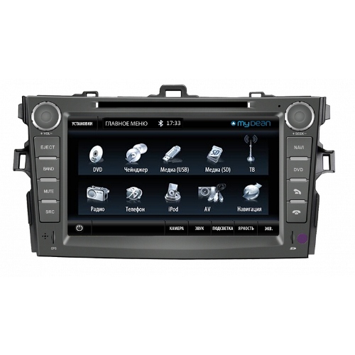 Штатная магнитола MyDean для автомобилей Toyota Corolla - многофункциональная мультимедийная система. Устройство имеет встроенный TV-тюнер, благодаря которому вы не пропустите ни одной любимой телепередачи. Прибор оснащен GPS-датчиком, который обеспечивает навигацию. Дизайн модели полностью повторяет дизайн штатной аудиосистемы, подключается по штатным разъемам и поэтому прекрасно работает и легко устанавливается. Полный список возможностей смотрите во вкладке "Характеристики".