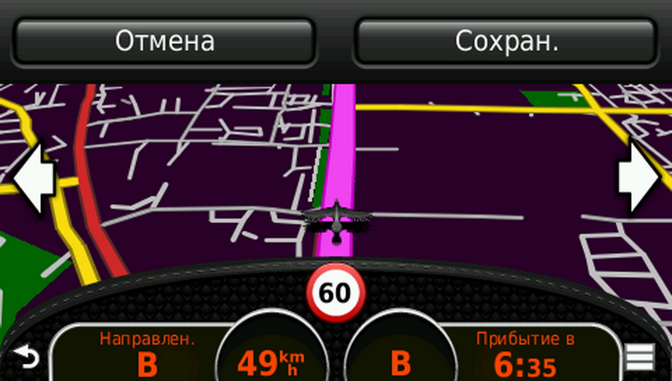 Устройство показывает ограничение скорости, действующие на данном участке пути. Также вы можете устанавливать свои собственные запреты, чтобы в дальнейшем, при планировании маршрута автоматически избегать определённые участки дорог.