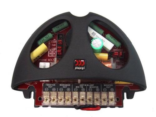 Пассивный кроссовер Morel Car Accuset-MX33.4E ориентирован прежде всего для использования в трехполосных системах, которые имеют купольные динамики средних частот (CDM-54 и CDM-88). Частота НЧ и СЧ-динамиков поднята до 380 Гц, за счет чего обеспечивается более стабильная и безопасная работа среднечастотных динамиков. Другие регулировки остались такими же, как и у предшественника - возможность изменения уровня твитера и среднечастотника, а так же круизны среза фильтров ВЧ и НЧ. Morel Car Accuset-MX33.4E может быть подключен как по типу bi-wiring, так и bi-amping.