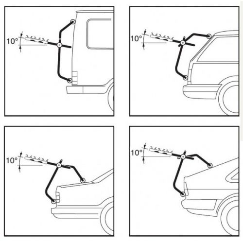 Багажник для велосипеда имеет универсальный черный цвет и будет гармонично смотреться на любом автомобиле. В комплект входят 6 самонатягивающихся ремней для крепления багажника к автомобилю, ремни для фиксации велосипедов и упор в дверцу багажника.