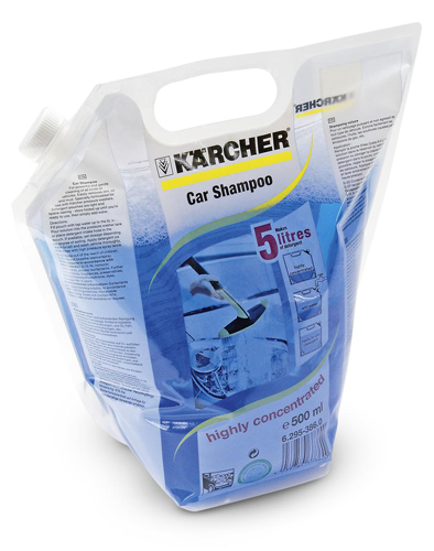 Автомобильный шампунь Kärcher 0,5 л - это концентрированное чистящее средство, которое поставляется в специальной складной канистре. Для получения чистящего раствора необходимо расправить канистру и долить в нее 4,5 литра обыкновенной водопроводной воды. После того, как концентрат смешается с водой, средство готово к употреблению. При помощи этого средства можно полностью удалить следы масел, смазок, атмосферных загрязнений (пыль, грязь и т.п.), а так же противогололедных реагенов. Данное средство можно применять для очистки лаковых покрытий автомобилей, стекла, полимерных и хромированных деталей.