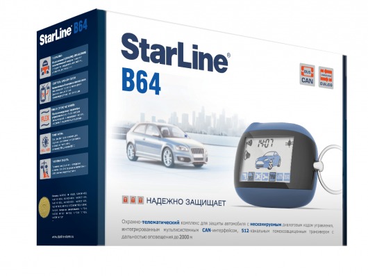 StarLine В64 2CAN SLAVE — охранно-телематический комплекс, который обеспечит надежную защиту Вашего автомобиля от посягательств. Среди положительных технологических новшеств в данной модели следует отметить встроенный CAN-модуль, 512-канальный помехозащищенный трансивер с дальностью до 2000 м.
