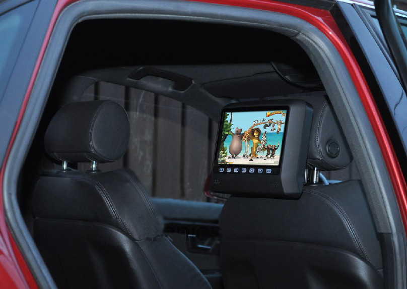 Управление и настройка прибора осуществляется при помощи сенсорных кнопок и пульта дистанционного управления. Этот монитор устанавливается на подголовник за счет специального кронштейна, который имеет возможность регулировки расстояния между креплениями (от 12 до 18 см), что обеспечивает надежную фиксацию на опорах штатного подголовника. В комплект поставки входит особый набор для крепления монитора на ножки, диаметр которых 10, 12 и 14 мм.