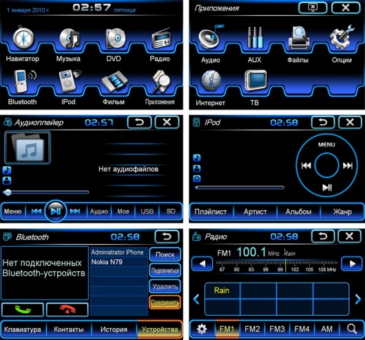 Кроме прочего, с помощью этого головного устройства вы сможете выходить в интернет и пользоваться функцией отображения пробок на дороге. Благодаря этой функции навигатор в вашей магнитоле будет прокладывать дорогу с учетом пробок, т.е. выбирать для вас самый быстрый и оптимальный путь. Чтобы появились доступ в Интернет и функция отображения кнопок, нужен модем Intro GPS 3G. Модем не входит в стандартную комплектацию и приобретается отдельно.