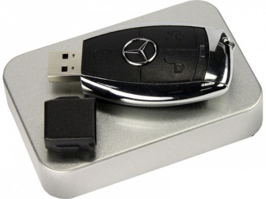 Но самое главное в этом аксессуаре - необычное исполнение. Выглядит флешка в точности как ключ от автомобиля MERCEDES. А упакована она в красивую подарочную коробочку. Все это делает данную USB флешку отличным подарком как молодому автовладельцу, так и зрелому солидному человеку!