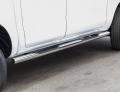 Боковые пороги на Ford Ranger из нержавеющей стали диаметром 76 мм не боятся коррозии, сколов и царапин и выдерживают большие нагрузки. Боковые подножки-пороги с проступями сделаны специально для автомобилей Ford Ranger от 2013 г.в., легко устанавливаются и стильно смотрятся.